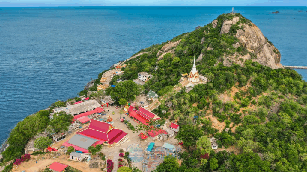 สามารถเดินขึ้นบันไดไปยังยอดเขาเพื่อชมวิวและไหว้พระ การปีนขึ้นใช้เวลาประมาณ 15-20 นาที